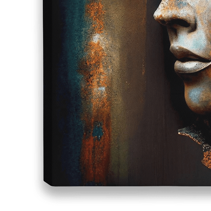 Die rostige Textur, die die Gesichter bedeckt, verdeutlicht, dass wir alle unsere Schwächen und Fehler haben, aber dass sie Teil dessen sind, wer wir sind.