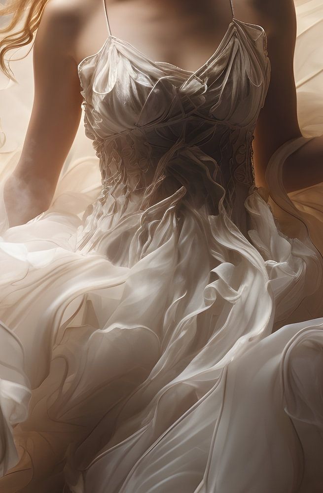 Ein Rausch von Chiffon in einer Mondnacht. Die träumende Frau..