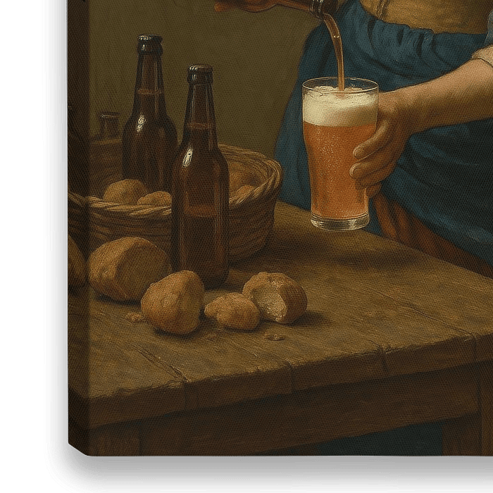 Bestelle diese Malerei Dienstmagd mit Bier von Poster Art Shop als Reproduktion auf Leinwand, Alu-Dibond, als Poster, Fototapete oder Acrylglasbild.