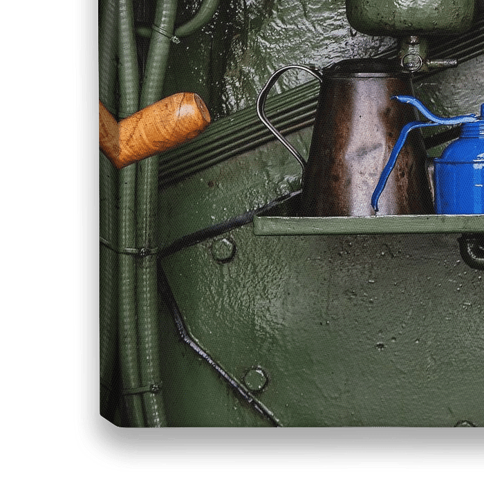 Nahaufnahme eines Bronzedieselmotors aus der gleichnamigen Fabrik in Appingedam, der im Pumpwerk Waterwolf, Weiler Lammerburen in der Provinz Groningen, in Betrieb ist.
