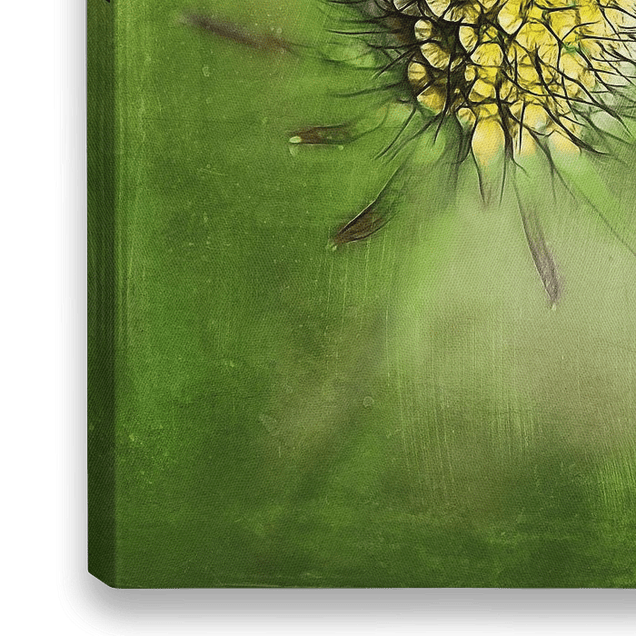 Bestelle dieses Blumen-Wandbild Distel Grün Gelb von Claudia Gründler als Reproduktion auf Leinwand, Alu-Dibond, als Poster, Fototapete oder Acrylglasbild.