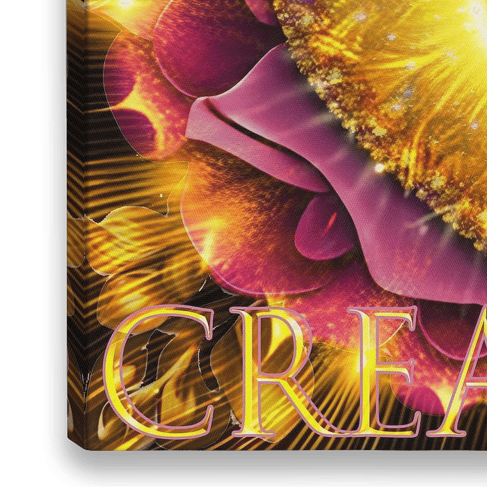 "Divine Creation" – die göttliche Schöpfung, die "Flower of the Golden Heart" – eine Blume mit einem goldenen Herzen und zarten pinken Blättern. Dieses Kunstwerk erinnert uns an die tiefe Verbindung zwischen dem Göttlichen und der Schöpfung.