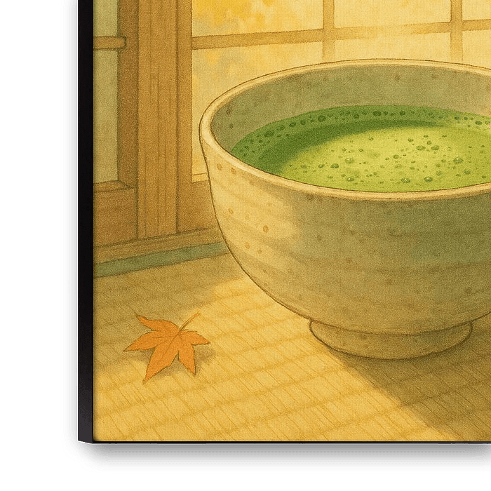 Dieses ruhige Matcha-Poster fängt die Essenz der japanischen Teekultur in einer sanften Aquarellillustration im Anime-Stil ein. Eine warme Schale mit leuchtend grünem Matcha steht in der Nähe eines Fensters, während im Hintergrund goldene Herbstblätter treiben und eine ruhige und meditative Atmosphäre schaffen. Die weichen Strukturen und die warme Farbpalette machen dieses Kunstwerk zu einer perfekten Ergänzung für Teeräume, Meditationsecken, Cafés oder gemütliche Innenräume. Es ist mehr als nur Dekoration, es symbolisiert Achtsamkeit, Harmonie und die zeitlose japanische Teezeremonie. Anime-Liebhaber, Teeliebhaber und Sammler von japanisch inspirierter Kunst werden den kulturellen Reichtum und die beruhigende Präsenz dieses Bildes zu schätzen wissen. Ob als Geschenk oder als Teil Ihrer eigenen Sammlung, diese Matcha-Illustration verleiht jedem Raum Ruhe und Eleganz. Bringen Sie Tradition, Frieden und natürliche Schönheit in Ihr Zuhause mit diesem von Anime inspirierten Matcha-Poster.
