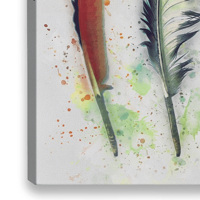 Jedes Jahr im Herbst, wenn meine Hühner sich mausern, hinterlassen sie hübsche Federn. Hier habe ich drei solcher Federn digital für ein farbenfrohes Werk im Aquarellstil genutzt.