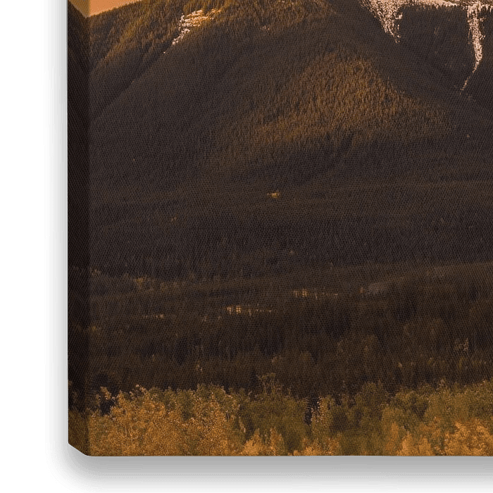 Die "Drei Schwestern" sind drei benachbarte Berggipfel in der Nähe der Stadt Canmore in Alberta, Kanada. Sie sind Teil der Rocky Mountains. Hier sehen wir sie früh am Morgen in warmes Sonnenlicht gehüllt.