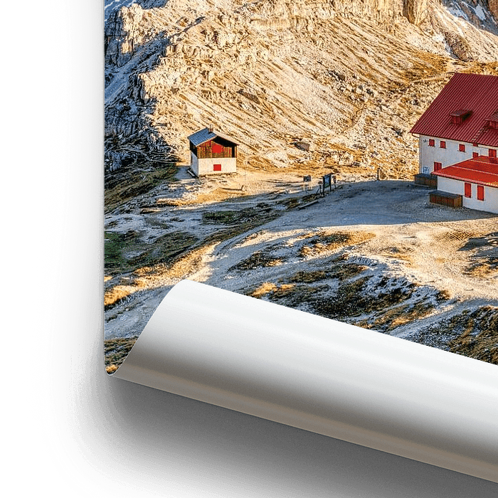 Bestelle dieses Landschafts-Wandbild Drei Zinnenhütte in den Dolomiten in Südtirol von Voss Fine Art Fotografie als Reproduktion auf Leinwand, Alu-Dibond, als Poster, Fototapete oder Acrylglasbild.