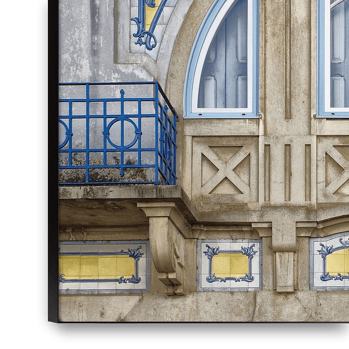 Ein Fenster im Jugendstil, umrahmt mit Azulejos