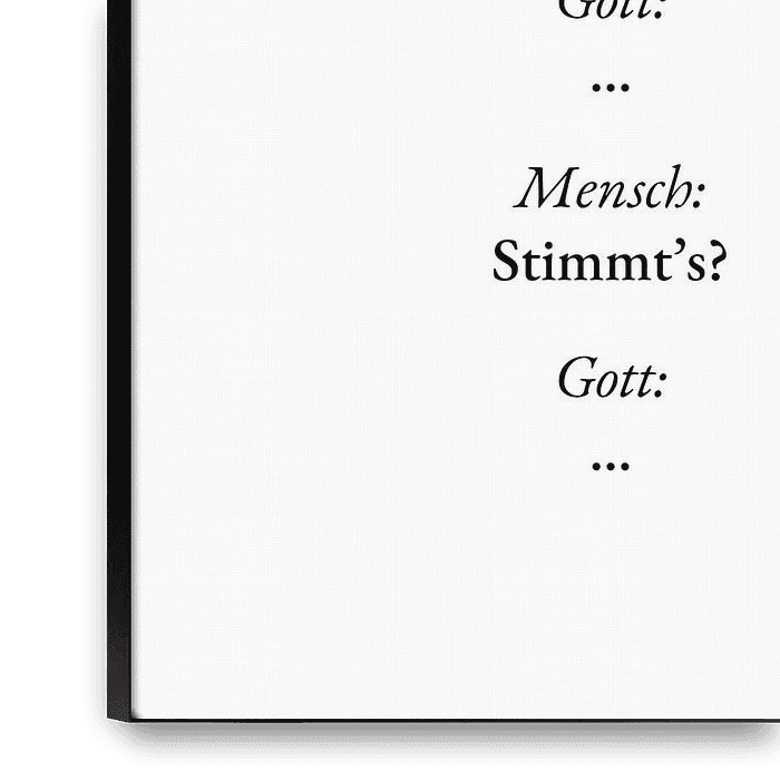 Mögliche Gespräche mit Gott zum Thema Klimakrise. Minimalistische Typografie auf weiß.