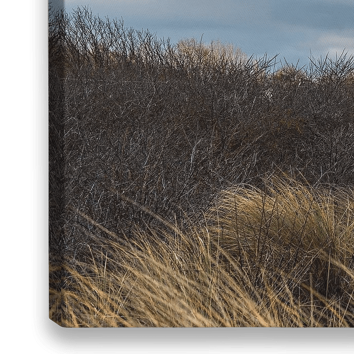 Bestelle dieses Landschafts-Wandbild Düne und Haus an der Küste der Ostsee in Ahrenshoop auf dem Fi von Rico Ködder als Reproduktion auf Leinwand, Alu-Dibond, als Poster, Fototapete oder Acrylglasbild.