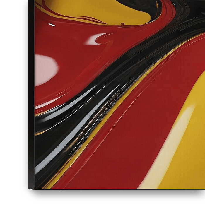 Dieses energiegeladene Design entführt Sie in eine Welt, in der die Farbe die Hauptrolle spielt. Die dynamischen Bewegungen von Rot, Gelb und Schwarz fließen zusammen und schaffen ein visuelles Spektakel, das die Sinne erregt. Es ist eine lebendige Darstellung von Leidenschaft, Kraft und Energie, eingefangen in einem unbezähmbaren Tanz…