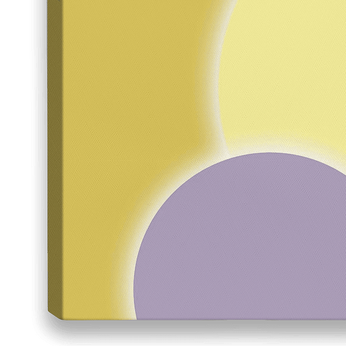 Ein grafisches, verspieltes Bild mit runden Formen, aus denen Licht strahlt. Diese Variante ist in Gelbtönen mit fliederfarbenen Akzenten gehalten. Die runden Formen strahlen Freundlichkeit und Zugänglichkeit aus. Jede Eklipse der Serie hat dank der unterschiedlichen Farbgebung ein anderes Aussehen.
