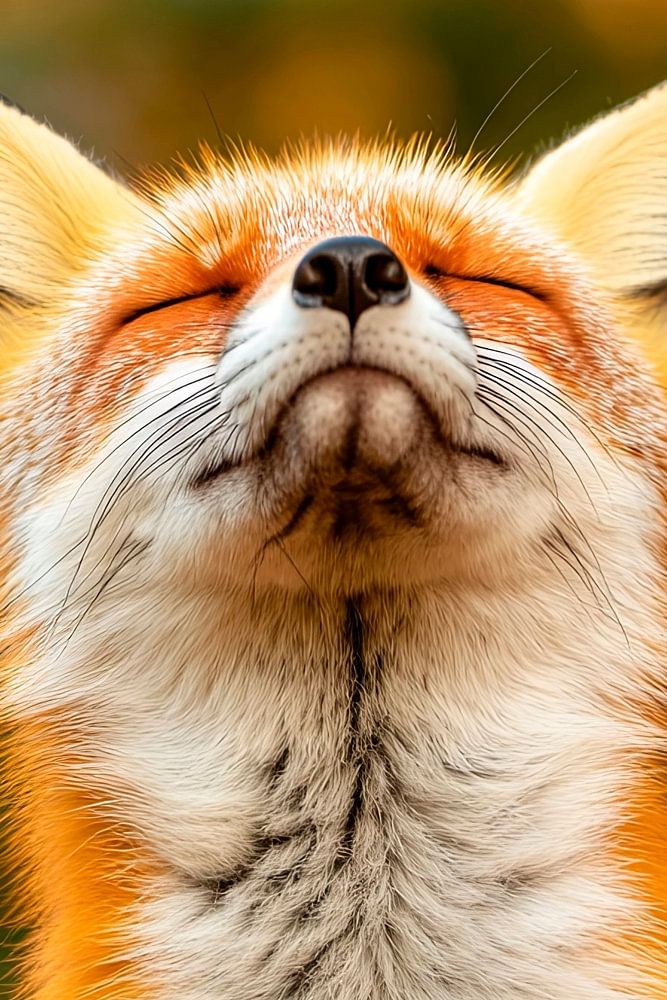 Ein majestätischer Fuchs, der die Welt mit geschlossenen Augen und einem sanften Lächeln betrachtet, als würde er die warmen Sonnenstrahlen auf seinem pelzigen Gesicht genießen. Sein leuchtendes, orangefarbenes Fell strahlt im Kontrast zu den sanften, goldenen Tönen der Umgebung – ein Moment der Ruhe in der Natur, voller Anmut und…