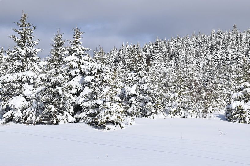 Bestelle das Foto Ein verschneiter Wald nach dem Sturm von Claude Laprise als Reproduktion auf Leinwand, Alu-Dibond, als Poster, Fototapete oder Acrylglasbild.