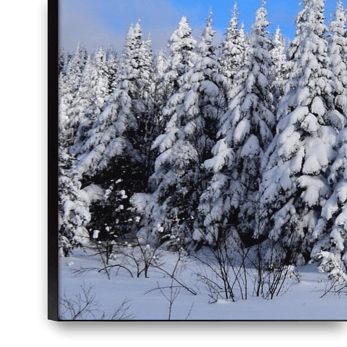 Bestelle das Foto Ein verschneiter Wald nach dem Sturm von Claude Laprise als Reproduktion auf Leinwand, Alu-Dibond, als Poster, Fototapete oder Acrylglasbild.