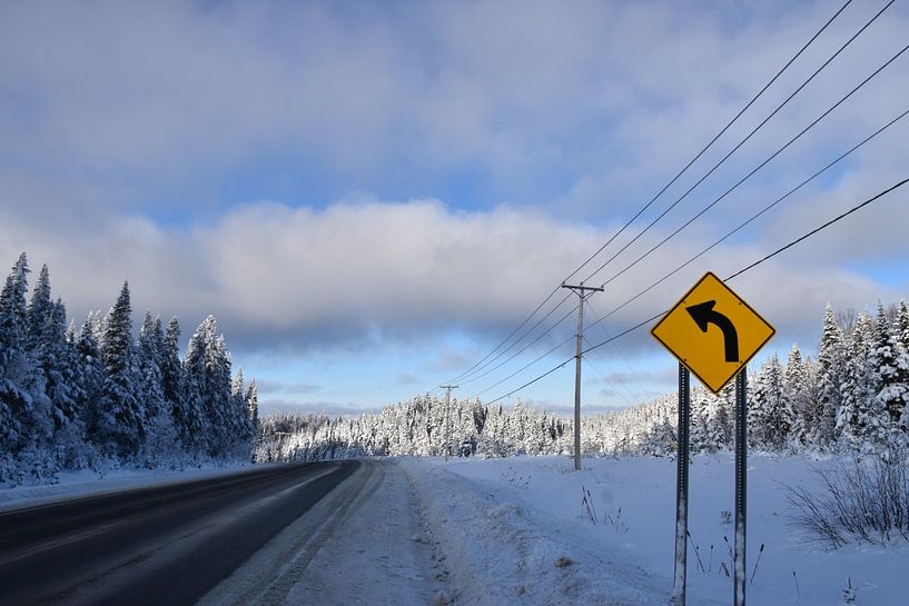 Bestelle das Foto Eine Landstraße im Winter von Claude Laprise als Reproduktion auf Leinwand, Alu-Dibond, als Poster, Fototapete oder Acrylglasbild.