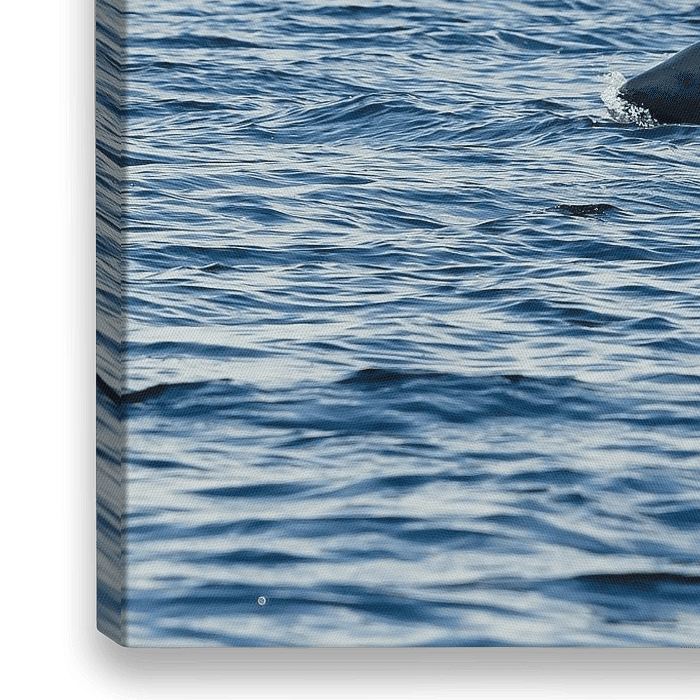 Ein Orca kommt an die Oberfläche und man kann das Luftloch des großen Tieres sehr gut sehen.