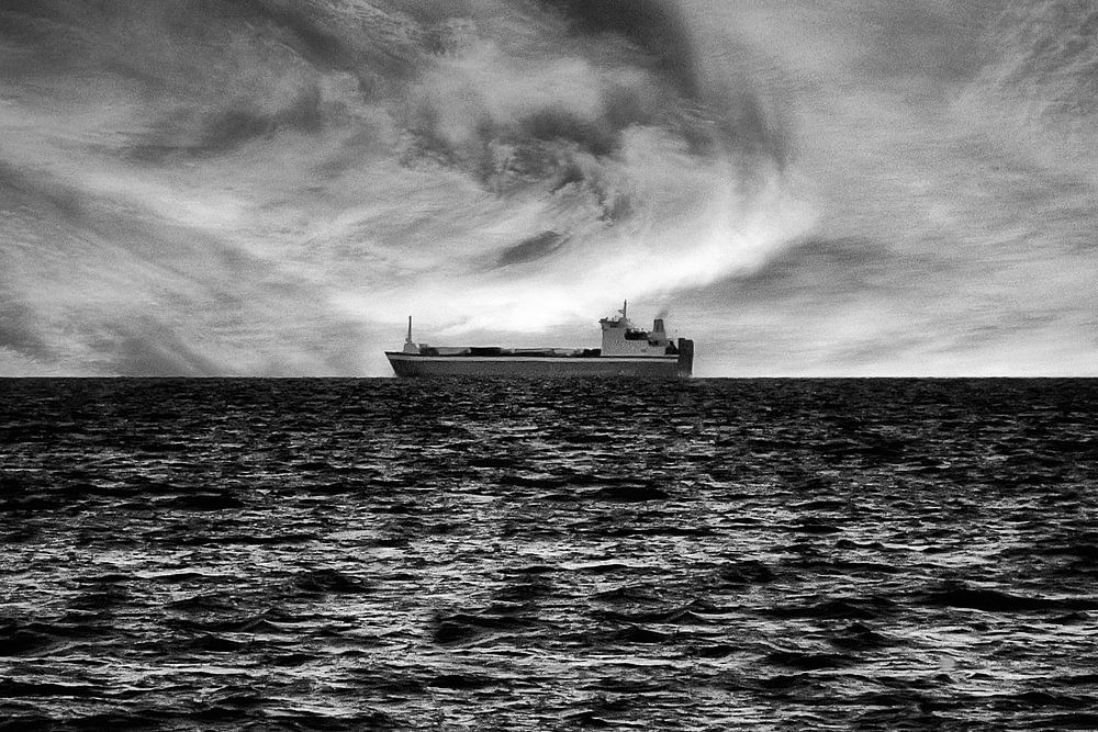 Ein einsames Boot unter einem wunderschönen Himmel auf einem endlosen Gewässer.