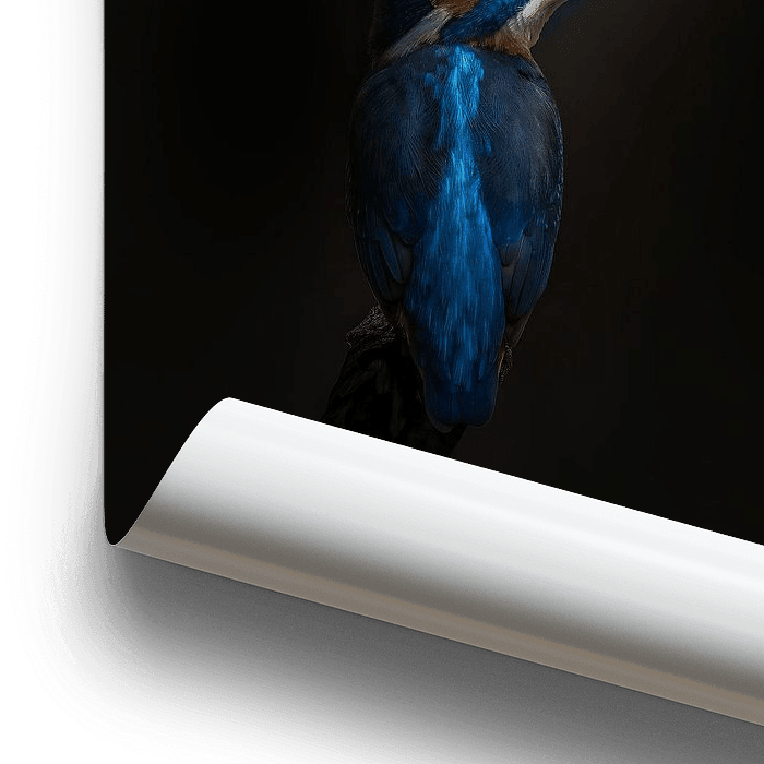 Bestelle dieses Vögel Wandbild Eisvogel im Rampenlicht von Erwin Stevens als Reproduktion auf Leinwand, Alu-Dibond, als Poster, Fototapete, ArtFrame oder Acrylglasbild, maßgefertigt in höchster Qualität.