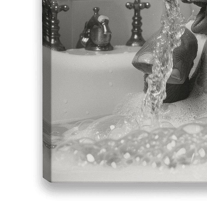 Badezimmer-Kunstwerk, das einen eleganten Elefanten in seiner Wanne zeigt. Die kunstvolle Schwarz-Weiß-Fotografie fängt die Anmut des Elefanten ein, während er sich in seiner ungewöhnlichen Umgebung entspannt. Diese faszinierende Darstellung verleiht Ihrem Badezimmer eine einzigartige Persönlichkeit und lässt Ihre Gäste staunen. Ein perfektes Gesprächsstück für Ihr WC, das die Grenzen zwischen Fantasie und Realität verschwimmen lässt. Entdecken Sie mit diesem Kunstwerk eine neue Dimension der Badezimmerdekoration und tauchen Sie ein in die Magie der Kreativität.