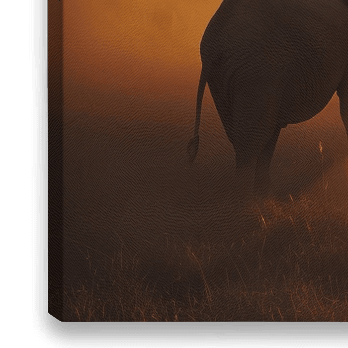 Bestelle das Foto Elefanten bei Sonnenuntergang Dämmerung Panorama von TheXclusive Art als Reproduktion auf Leinwand, Alu-Dibond, als Poster, Fototapete oder Acrylglasbild.