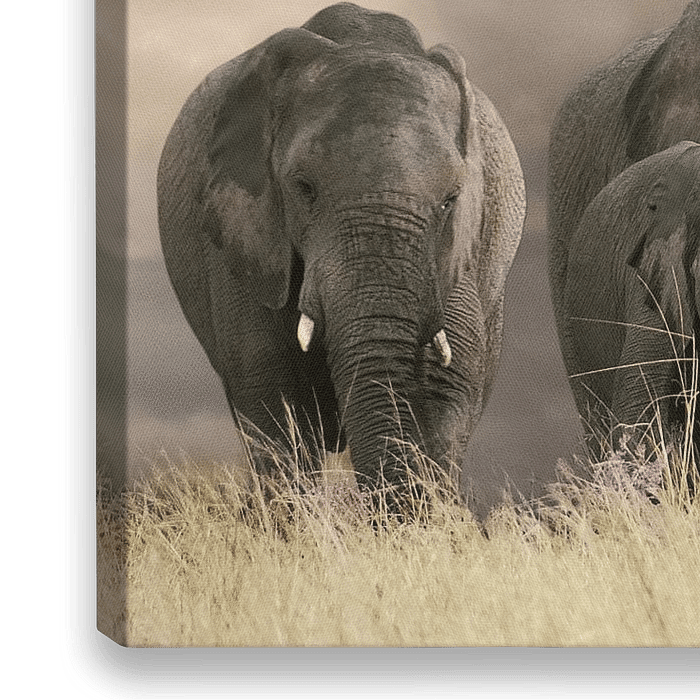 Bestelle dieses Landschafts-Wandbild Elefanten von Marcel van Balken als Reproduktion auf Leinwand, Alu-Dibond, als Poster, Fototapete oder Acrylglasbild.