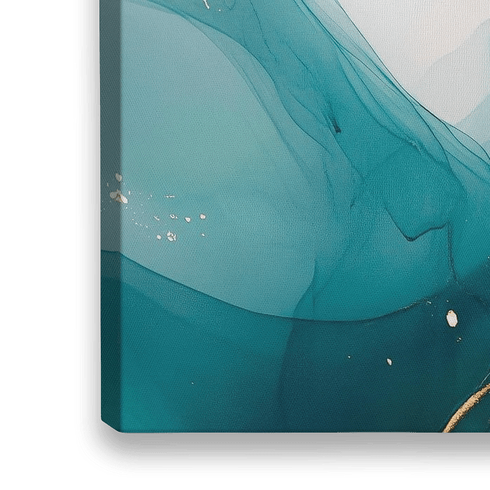 Schwungvolle Wellen in sanften Aqua- und Türkistönen fangen das Licht ein und verleihen dem Raum eine harmonische Eleganz. Goldene Akzente durchziehen das Gemälde wie Sonnenstrahlen, die das Gefühl von Ruhe und Luxus vermitteln. Perfekt für das Wohnzimmer, schafft es eine einladende Atmosphäre, die zum Verweilen einlädt.