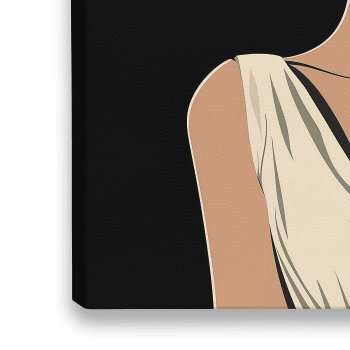 Elegante Frau mit Wein Illustration Minimalismus Malerei, die Luxus und Charme ausstrahlt. Die Verwendung eines schwarzen Hintergrunds, subtile Farbtöne kombiniert mit einem minimalistischen Design macht diesen Fotodruck zu einem echten Blickfang in jedem Raum.