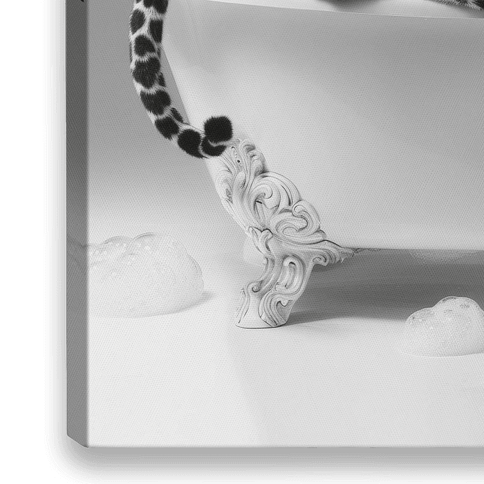 Dieses stilvolle Badezimmerbild zeigt einen eleganten Leoparden, der in seiner Badewanne ruht und Ihrem Badezimmer eine besondere Note verleiht. Die Schwarz-Weiß-Fotografie fängt die Anmut des Leoparden ein und betont die Details der Szene, während es gleichzeitig eine charmante und einzigartige Ergänzung für Ihre Badezimmereinrichtung…