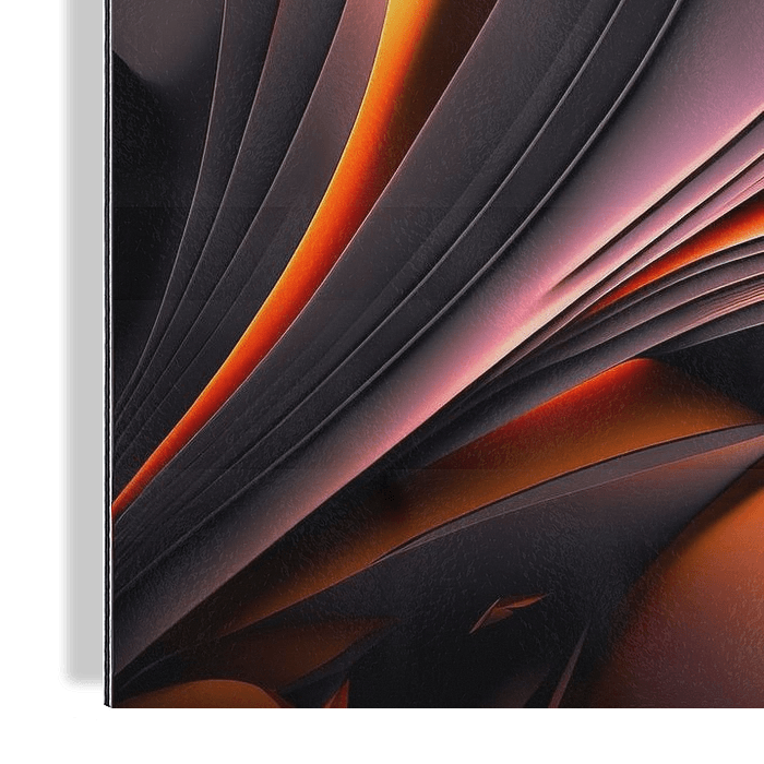 Dieses eindrucksvolle Kunstwerk überzeugt durch seine elegante Formensprache und die kraftvolle Inszenierung von Licht und Schatten. Fließende, geschwungene Strukturen entfalten sich wie gefaltete Ebenen oder moderne Skulpturen und erzeugen eine dynamische, zugleich harmonische Komposition. Warme Glut- und Orangetöne durchziehen das…