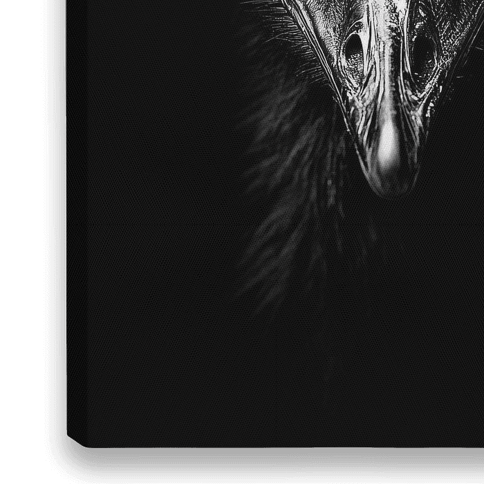 Ein eindrucksvolles Porträt eines geheimnisvollen Vogels, dessen durchdringende Augen und markante Konturen in schimmerndem Schwarz auffallen. Die mysteriöse Aura und die starken Kontraste verleihen jedem Raum eine gewisse Tiefe und Dramatik. Besonders gut zur Geltung kommt es im Wohnzimmer, wo es Gespräche anregen und faszinieren kann.