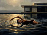 Bestelle diese Malerei Entspanntes Schwimmen im Infinity-Pool von Jan Keteleer als Reproduktion auf Leinwand, Alu-Dibond, als Poster, Fototapete oder Acrylglasbild.