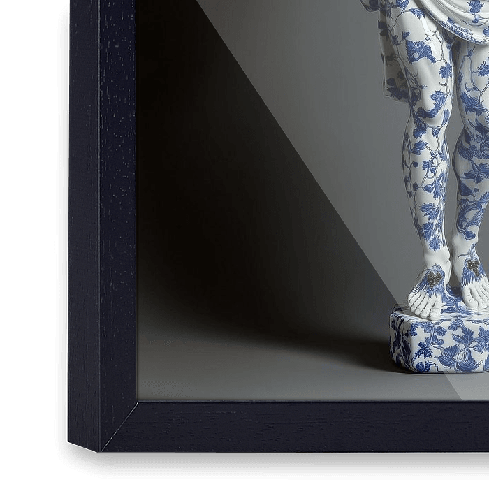 Exalted Christ" ist eine faszinierende und moderne Interpretation der ikonischen Statue von Jesus Christus. Der Künstler hat einen hyperrealistischen Ansatz gewählt, bei dem die Figur aus delfterblauem Porzellan mit zarten Blumenmotiven gefertigt ist, die das klassische Design mit einem zeitgenössischen Flair verbinden. Die…