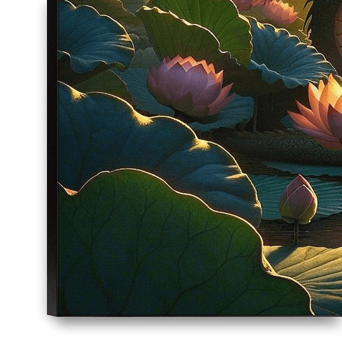 Bestelle das digitale Kunst Bild Erleuchtung im Lotus-Teich von artefacti als Reproduktion auf Leinwand, Alu-Dibond, als Poster, Fototapete oder Acrylglasbild.