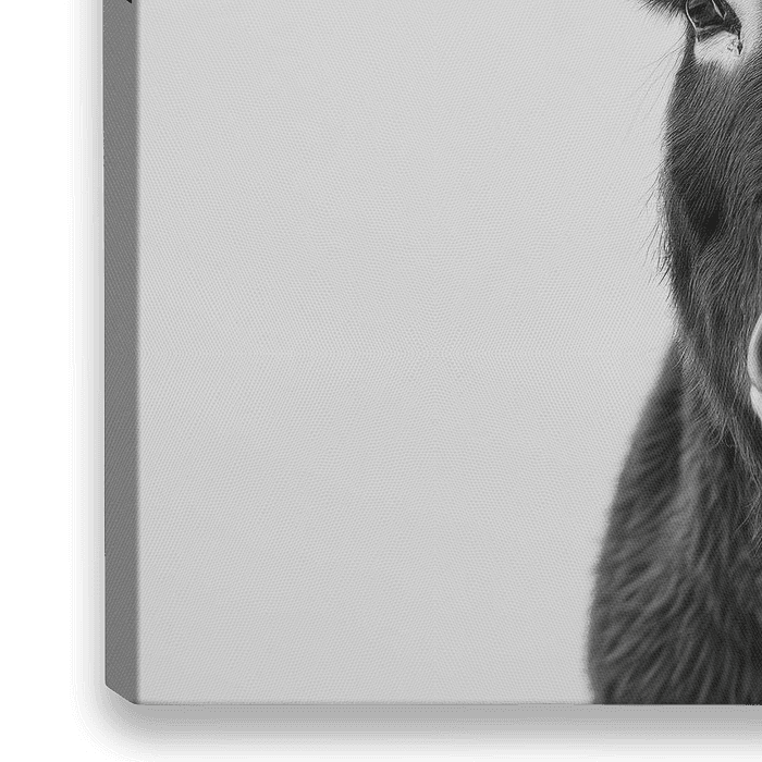 Entdecken Sie die sanfte Anmut dieses Esels in einer fesselnden Schwarzweißfotografie. Die feinen Details seines Fells und der liebevolle Ausdruck in seinen Augen bringen die ruhige und geduldige Natur dieses Tieres wunderbar zur Geltung. Ideal für Wohnräume, Büros oder Bauernhausdekorationen, verleiht dieses Kunstwerk Ihrem Raum eine…