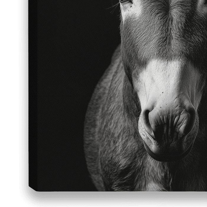 Mit großen, aufmerksamen Ohren und einem unverwechselbaren Gesichtsausdruck strahlt dieses edle Tier sowohl Ruhe als auch Charakter aus. Die monochrome Ausarbeitung verstärkt die Ausdruckskraft und zieht sofort die Blicke auf sich. Ideal für ein Wohnzimmer, verleiht es jedem Raum eine charmante, rustikale Note und sorgt für lebhafte…