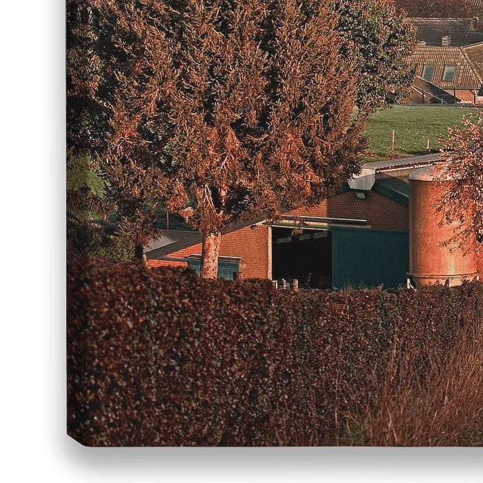 Das Dorf Eys im südlimburgischen Hügelland an einem Herbsttag mit einem "goldenen" Sonnenaufgang.
