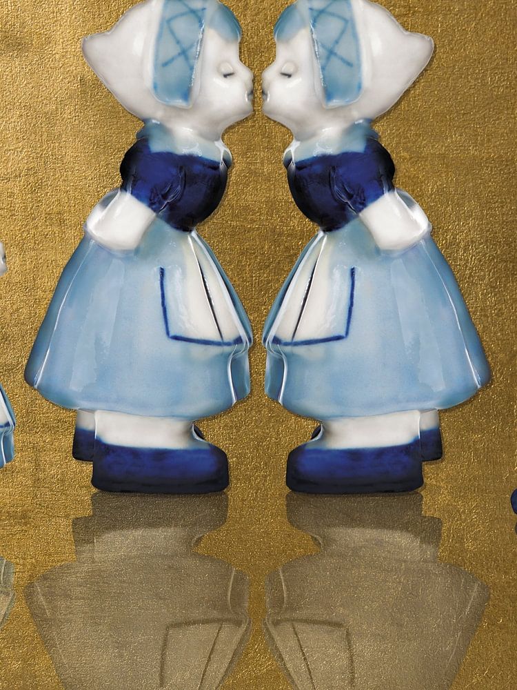 Delfter Blau küssendes Paar, Frauen mit Familie. Platziert auf einem goldenen Hintergrund für einen modernen Look. Es lebe die Liebe und unsere Freiheit! Personalisierung möglich, senden Sie mir eine Nachricht und ich werde etwas Schönes machen!
