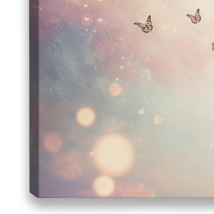 In diesem verträumten Bild schaukelt ein kleines Mädchen auf einer Schaukel, die an einem von Schmetterlingen umgebenen Baum hängt. Die Szene ist erfüllt von einer Atmosphäre des Staunens und der Magie, während die Schmetterlinge in allen Farben des Regenbogens leuchten und in den Himmel aufsteigen. Das Mädchen, dessen Gesicht dem…