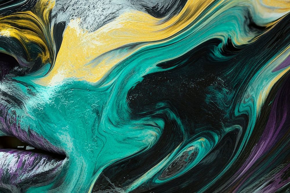 Ein harmonisches Spiel aus lebendigen Farben entfaltet sich in fließenden Linien, die eine emotionale Tiefe und mysteriöse Anziehungskraft schaffen. Die sanften Konturen des Gesichts scheinen im Einklang mit kreativen Gedanken zu stehen, ideal für ein kreatives Büro oder einen inspirierenden Arbeitsbereich, wo Ideen lebendig werden können.