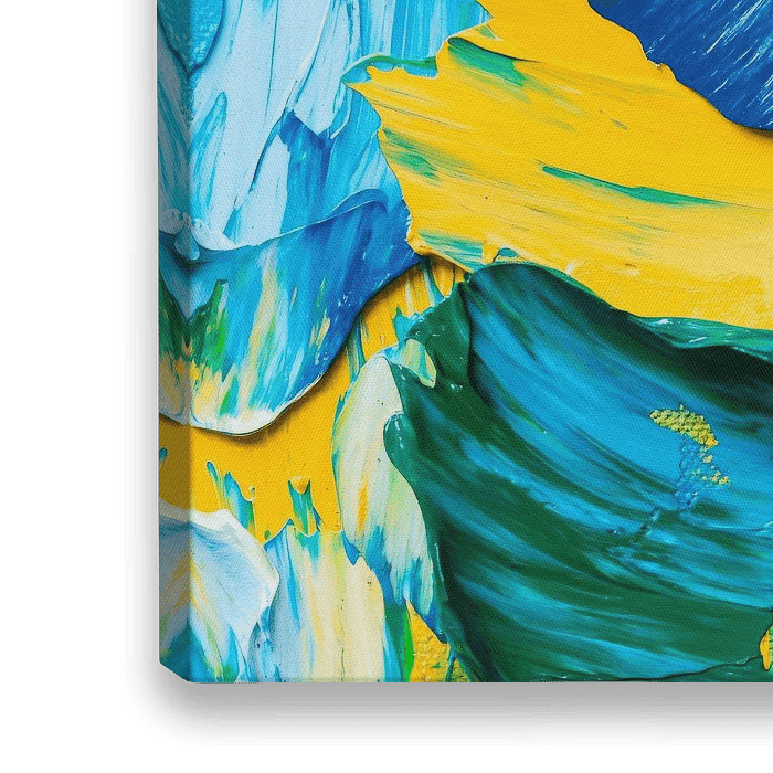Lebendige Farbschwälle in Blau und Gelb tanzen harmonisch auf der Leinwand und erzeugen ein Gefühl von Energie und Dynamik. Die kräftigen Pinselstriche verleihen dem Kunstwerk eine spürbare Tiefe und Textur, die im Wohnzimmer für lebhafte Gespräche und inspirierende Momente sorgt. Ein wahres Highlight für jeden Raum!