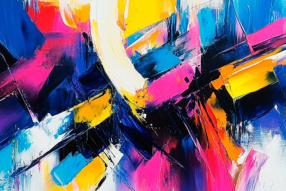 Lebendige Farbtupfer tanzen harmonisch auf der Leinwand, während kraftvolle Pinselstriche eine dynamische Energie ausstrahlen. Die explosiven Kombinationen von Blau, Pink und Gelb ziehen alle Blicke auf sich und verleihen jedem Raum eine inspirierende Note. Perfekt geeignet für ein modernes Wohnzimmer, um Kreativität und Lebensfreude zu…