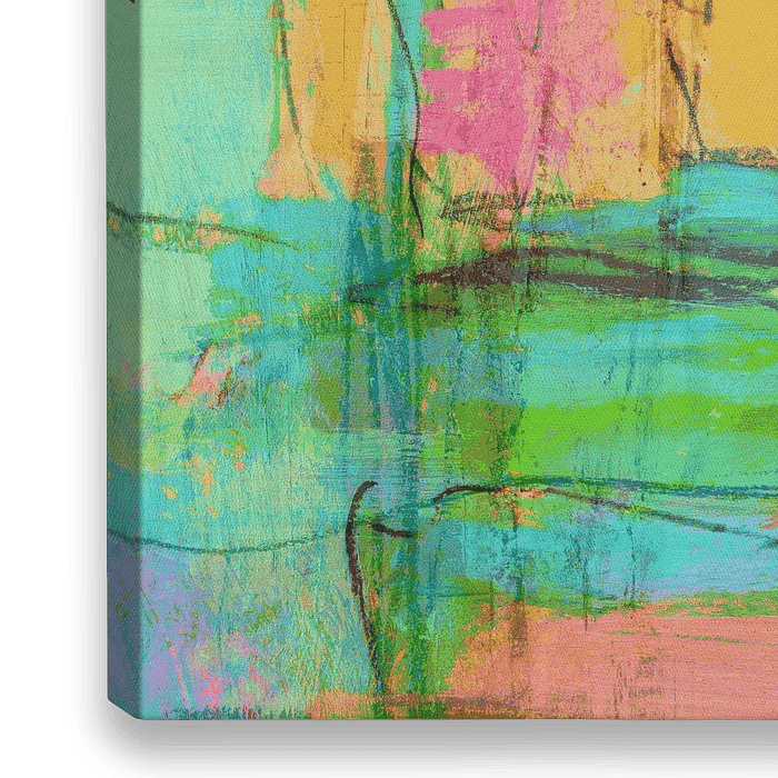 Bestelle dieses abstrakte Wandbild Farbgesang Geometrisch Grün Gelb von Claudia Gründler als Reproduktion auf Leinwand, Alu-Dibond, als Poster, Fototapete oder Acrylglasbild.