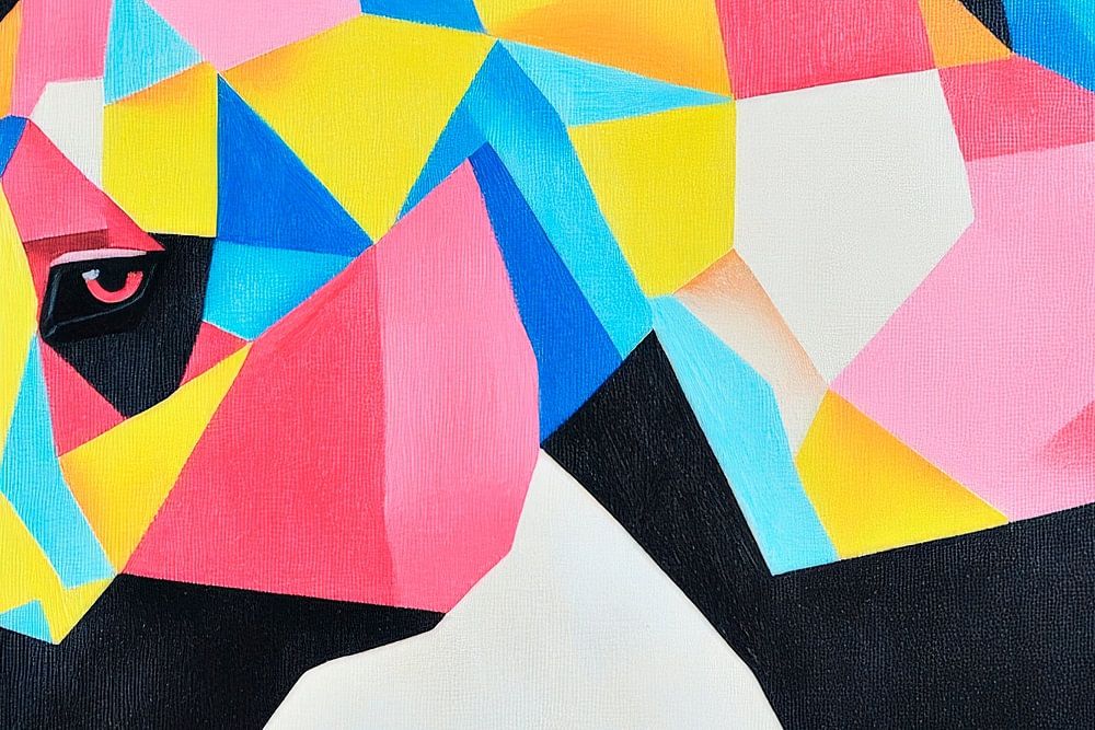 Ein faszinierendes Pferdeporträt in lebhaften, geometrischen Formen zieht den Betrachter sofort an. Die kräftigen Farben in Pink, Blau und Gelb verleihen dem Bild Dynamik und Energie. Ideal für ein modernes Wohnzimmer oder ein kreatives Arbeitszimmer, bringt es frischen Schwung und inspiriert zu neuen Ideen.