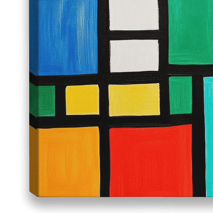 Ein fesselndes Spiel aus leuchtenden Farben entfaltet sich, während kräftiges Rot, strahlendes Gelb und kühles Blau in harmonischem Chaos aufeinandertreffen. Die geometrischen Formen, präzise umrandet von kräftigen schwarzen Linien, laden den Betrachter ein, zwischen Ordnung und Zufall zu wandern und die eigene Fantasie zum Leben zu…