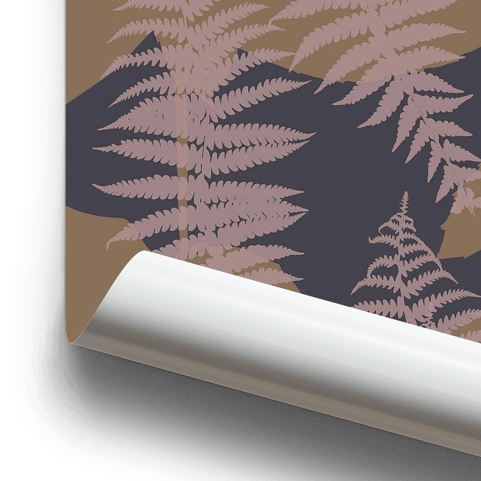Bestelle dieses abstrakte Wandbild Farnblätter in Rosa, Ocker und Violett. Abstrakte botanische Kunst. von Dina Dankers als Reproduktion auf Leinwand, Alu-Dibond, als Poster, Fototapete oder Acrylglasbild.