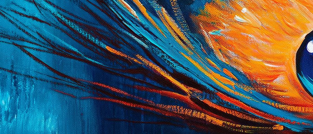 In leuchtenden Blautönen und intensiven Orangetönen entfaltet sich ein faszinierendes Auge, das lebendig und neugierig wirkt. Die dynamischen Pinselstriche verleihen dem Bild eine fast hypnotisierende Tiefe. Perfekt geeignet für das Wohnzimmer, zieht dieses Kunstwerk garantiert die Blicke auf sich und regt zum Nachdenken an.
