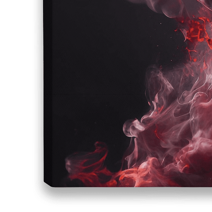 Die Farben sind lebendig und leuchtend, von Feuerrot über Orange bis Gelb, wodurch das Feuer zum Leben erweckt wird. Der Rauch in den Farben Grau und Weiß läßt das Rot des Feuers in sich glühen und verleiht dem Bild dadurch eine zusätzliche Dimension und fügt eine spannende Textur hinzu. Der dunkle Hintergrund trägt dazu bei, dass sich das Feuer und der Rauch deutlich von der Umgebung abheben und noch mehr hervorstechen. Die künstlerische Darstellung des Sachverhalts ist wirklich gelungen und macht dieses Kunstwerk zu einem Hingucker in jedem Raum.