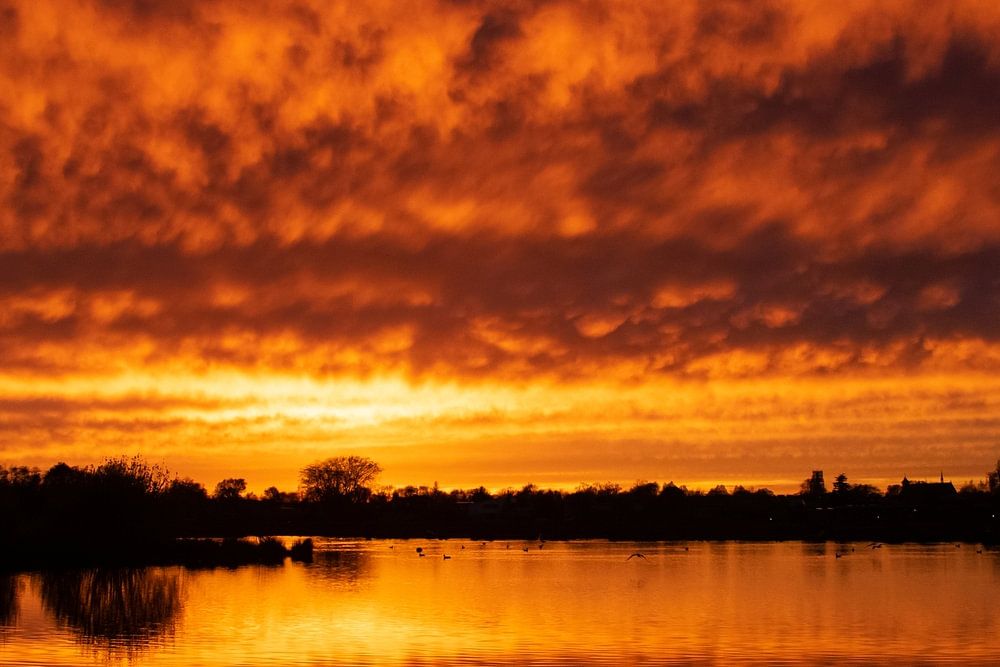 Sonnenuntergang in Haastrecht... wo der blaue Himmel durch den Saharasand in der Luft feurig gefärbt war.