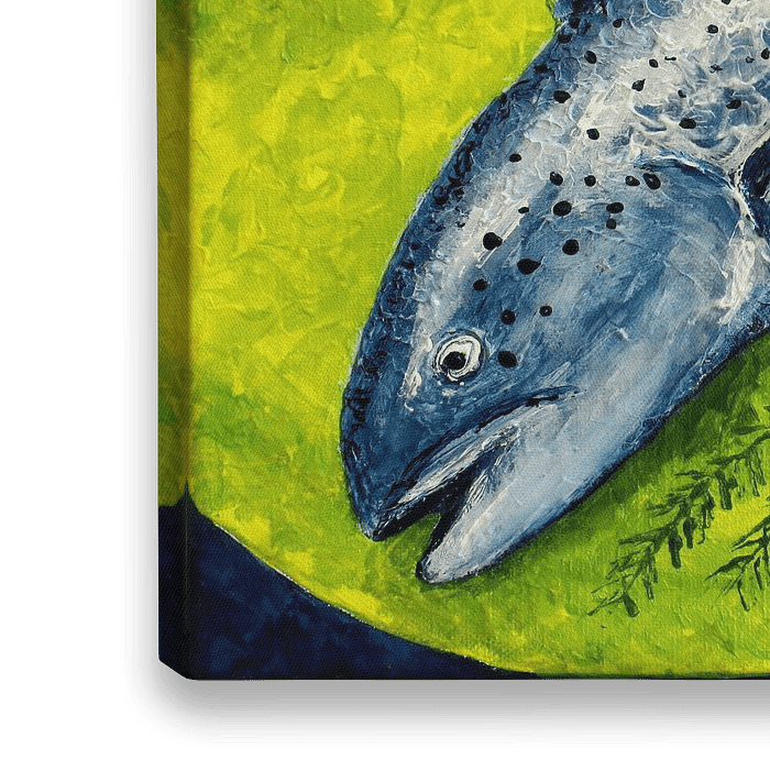 Der Fisch als Motiv steht für Ruhe, Klarheit und Freiheit – Werte, die sich auch in der kunstvollen Gestaltung dieses Werkes widerspiegeln. Ob im nordischen Einrichtungsstil, maritim inspiriert oder als farbiger Akzent in einer modernen Wohnung: Dieser Kunstdruck bringt Persönlichkeit und Küstencharme an deine Wand.