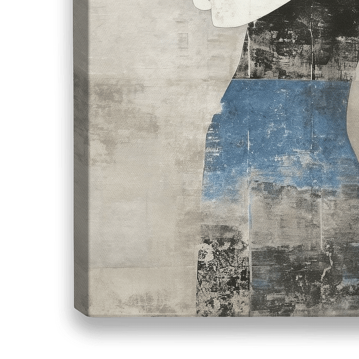 Details: Frau, abstrakt, Textur, kontemplativ, gelb, blau, grau, stilisiert, modern, Kunst,